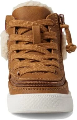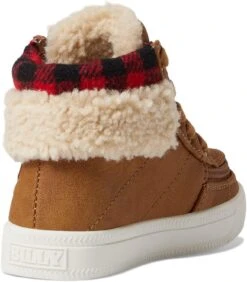 - COZY LOOK: Give those little first steps a pampered warm touch in the BILLY Footwear Kids Cuff II, featuring round-toe crew-high boots with a leather-like upper and a cute flannel addition by the collar and stylish faux fur detail